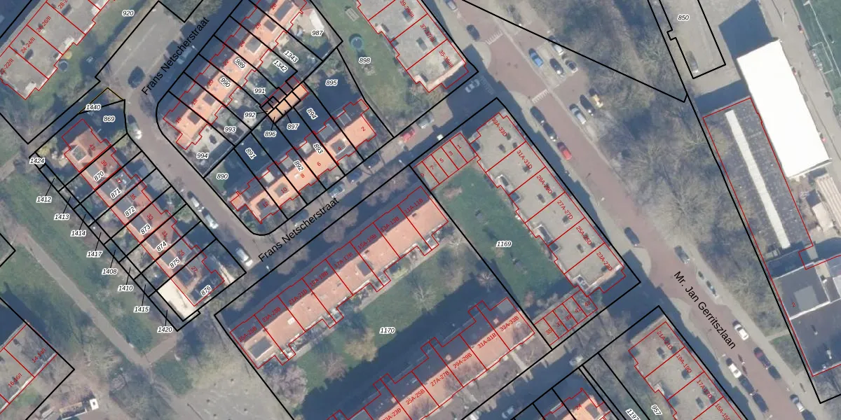 Het perceel waarop Frans Netscherstraat 11-A staat heeft een oppervlakte van 3307 m². Dit is een zeer groot perceel. De perceeloppervlakte wordt geregistreerd door het Kadaster. Gedetailleerde informatie over de maten van dit perceel kunt u vinden in het rapport Kadastrale kaart met maatvoering van Frans Netscherstraat 11-A.