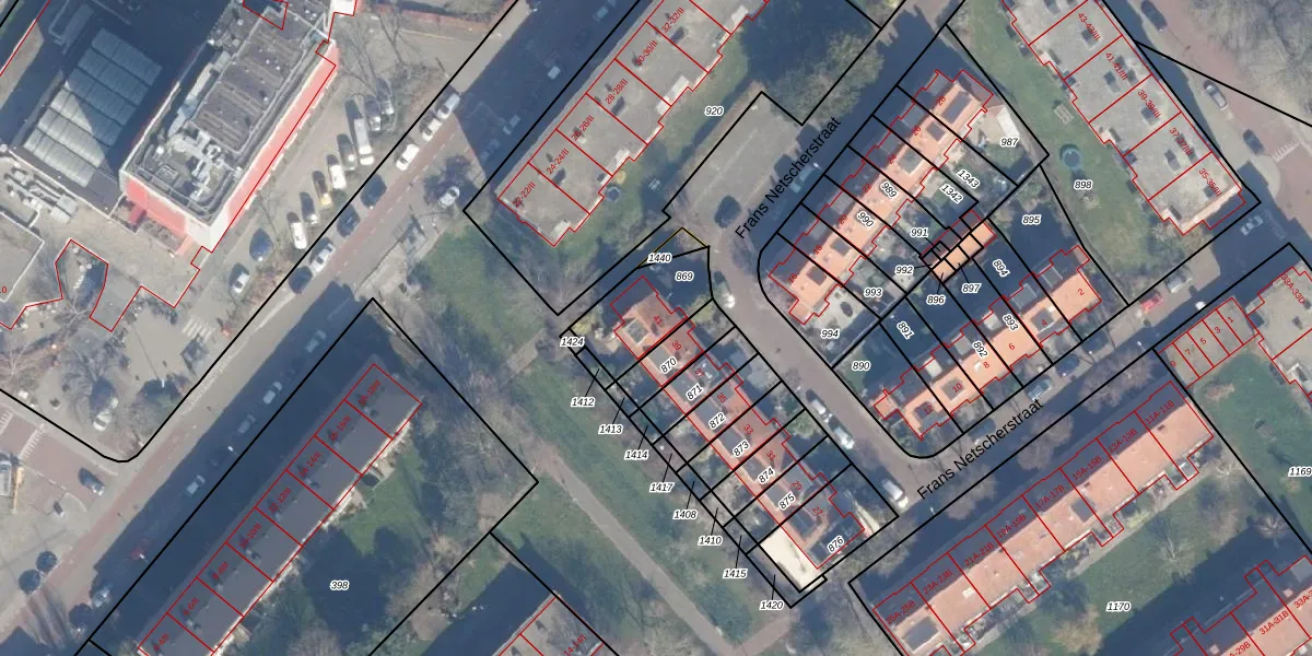Het perceel waarop Frans Netscherstraat 41 staat heeft een oppervlakte van 220 m². Dit is een middelgroot perceel. De perceeloppervlakte wordt geregistreerd door het Kadaster. Gedetailleerde informatie over de maten van dit perceel kunt u vinden in het rapport Kadastrale kaart met maatvoering van Frans Netscherstraat 41.