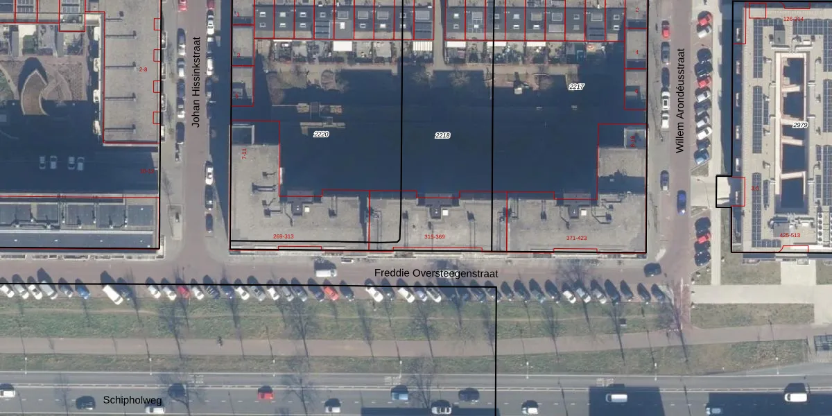 Freddie Oversteegenstraat 321 is gelegen op kadastraal perceel HLM02Q2218. Deze kadastrale aanduiding is uniek en wordt gebruikt door het Kadaster om eigendomsrechten en andere zakelijke rechten vast te leggen. Het perceel maakt onderdeel uit van de kadastrale gemeente Haarlem.
