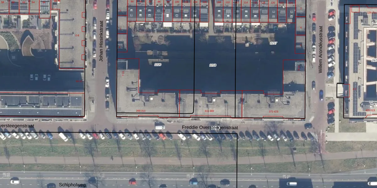 Het perceel waarop Freddie Oversteegenstraat 349 staat heeft een oppervlakte van 2545 m². Dit is een zeer groot perceel. De perceeloppervlakte wordt geregistreerd door het Kadaster. Gedetailleerde informatie over de maten van dit perceel kunt u vinden in het rapport Kadastrale kaart met maatvoering van Freddie Oversteegenstraat 349.