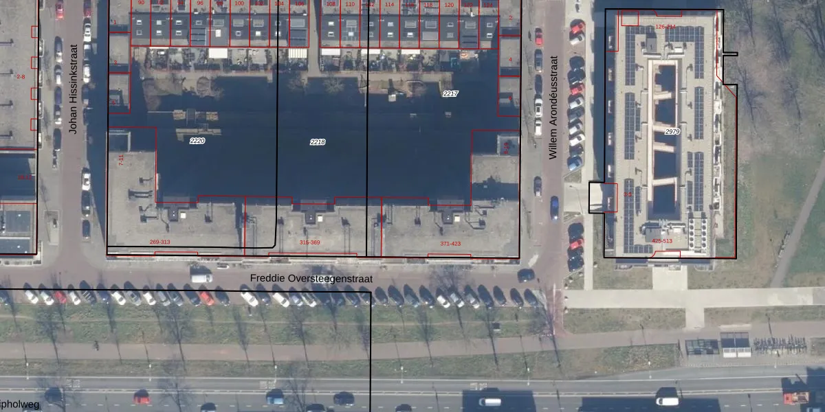 Freddie Oversteegenstraat 385 is gelegen op kadastraal perceel HLM02Q2217. Deze kadastrale aanduiding is uniek en wordt gebruikt door het Kadaster om eigendomsrechten en andere zakelijke rechten vast te leggen. Het perceel maakt onderdeel uit van de kadastrale gemeente Haarlem.