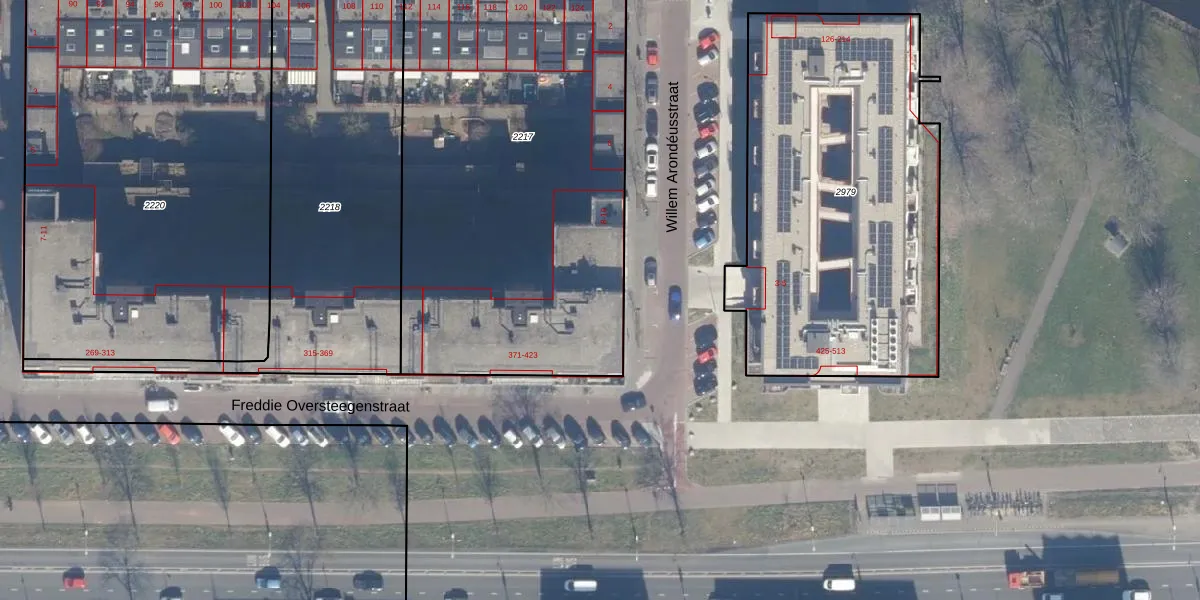 Freddie Oversteegenstraat 421 is gelegen op kadastraal perceel HLM02Q2217. Deze kadastrale aanduiding is uniek en wordt gebruikt door het Kadaster om eigendomsrechten en andere zakelijke rechten vast te leggen. Het perceel maakt onderdeel uit van de kadastrale gemeente Haarlem.