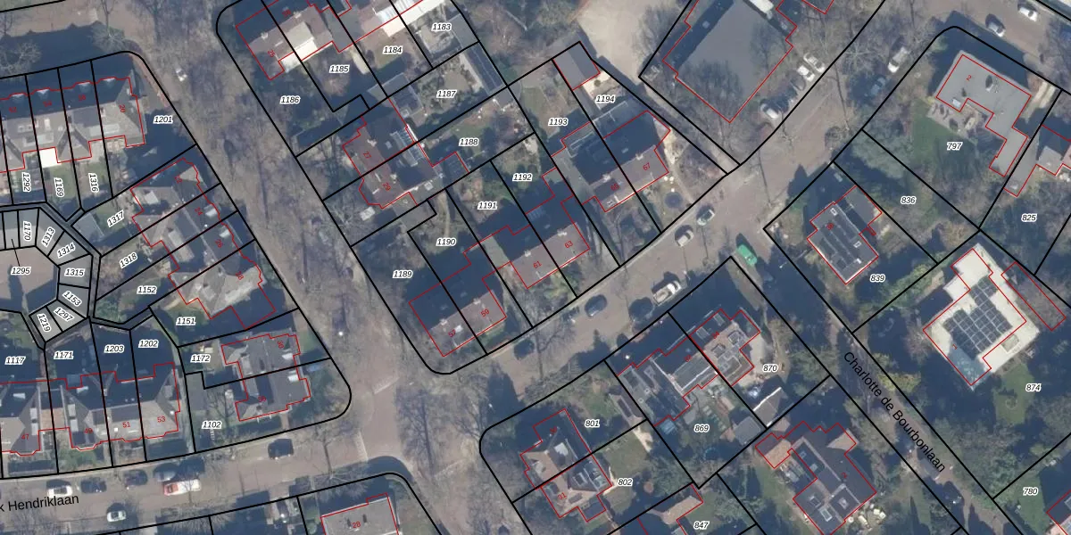Gebruik de zoekbalk of klik op een perceel voor informatie over de adressen binnen dit perceel.