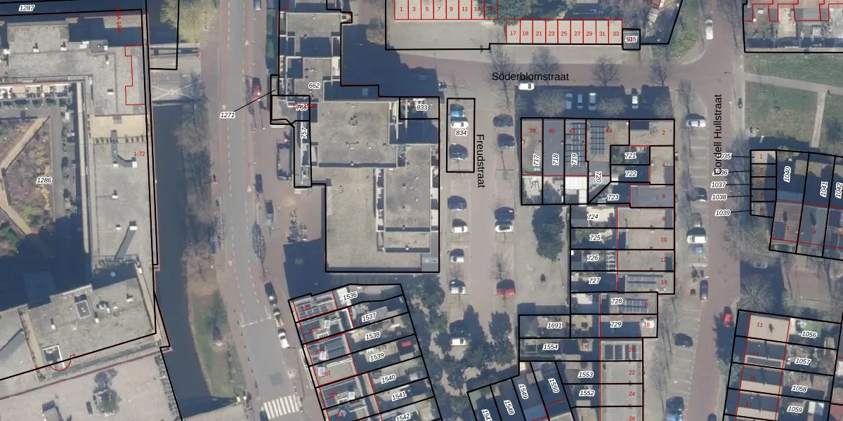 Het perceel waarop Freudstraat 6 staat heeft een oppervlakte van 1930 m². Dit is een zeer groot perceel. De perceeloppervlakte wordt geregistreerd door het Kadaster. Gedetailleerde informatie over de maten van dit perceel kunt u vinden in het rapport Kadastrale kaart met maatvoering van Freudstraat 6.