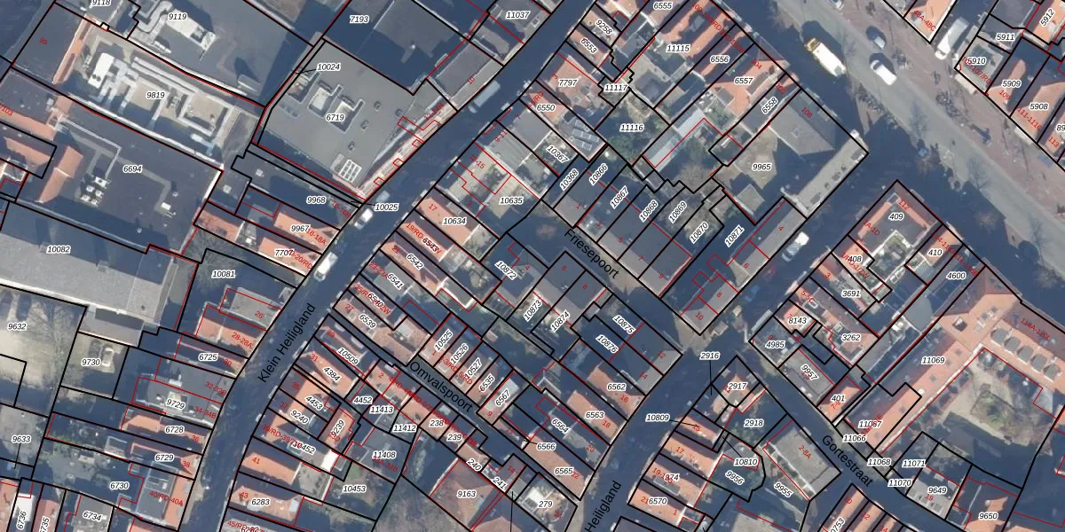 Gebruik de zoekbalk of klik op een perceel voor informatie over de adressen binnen dit perceel.