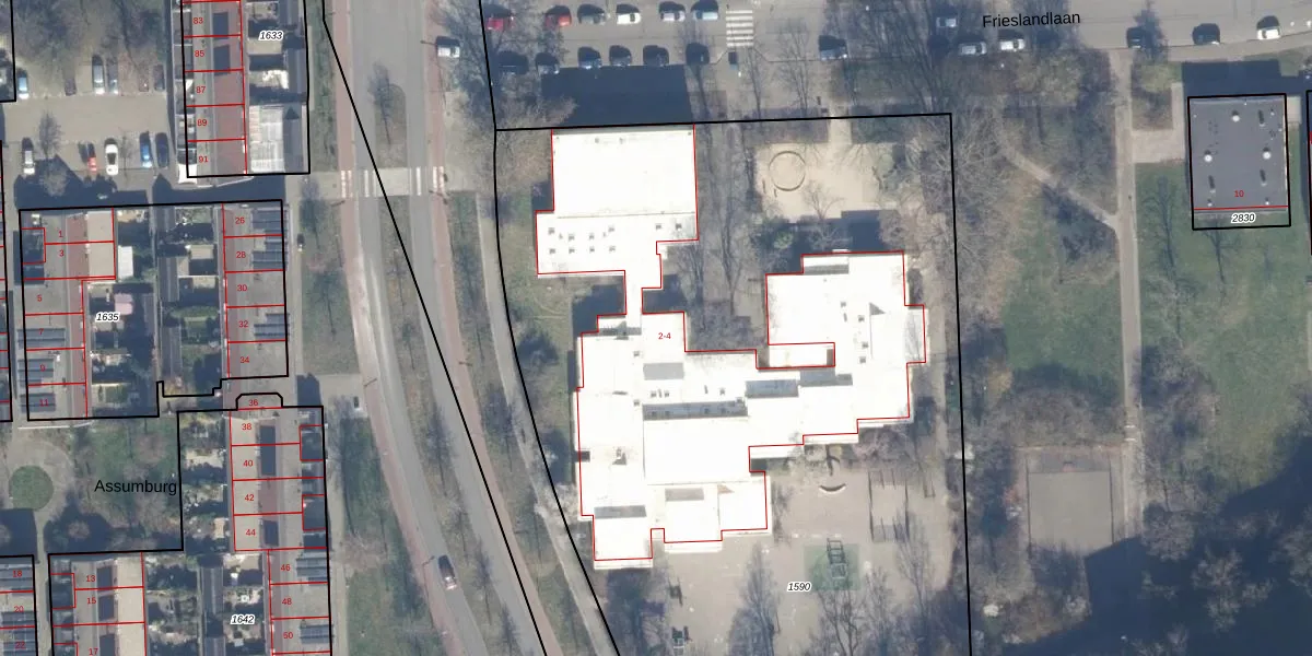 Het perceel waarop Frieslandlaan 2 staat heeft een oppervlakte van 5823 m². Dit is een zeer groot perceel. De perceeloppervlakte wordt geregistreerd door het Kadaster. Gedetailleerde informatie over de maten van dit perceel kunt u vinden in het rapport Kadastrale kaart met maatvoering van Frieslandlaan 2.