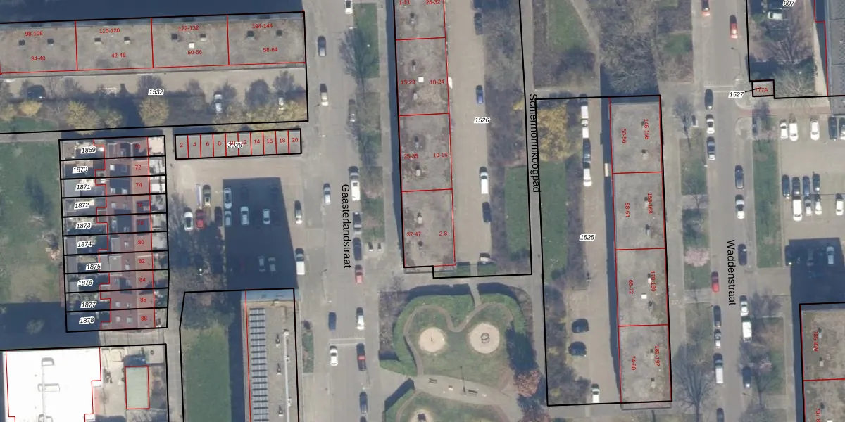 Het perceel waarop Gaasterlandstraat 39 staat heeft een oppervlakte van 2241 m². Dit is een zeer groot perceel. De perceeloppervlakte wordt geregistreerd door het Kadaster. Gedetailleerde informatie over de maten van dit perceel kunt u vinden in het rapport Kadastrale kaart met maatvoering van Gaasterlandstraat 39.