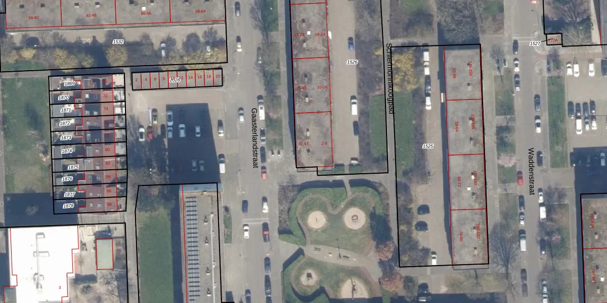 Het perceel waarop Gaasterlandstraat 43 staat heeft een oppervlakte van 2241 m². Dit is een zeer groot perceel. De perceeloppervlakte wordt geregistreerd door het Kadaster. Gedetailleerde informatie over de maten van dit perceel kunt u vinden in het rapport Kadastrale kaart met maatvoering van Gaasterlandstraat 43.