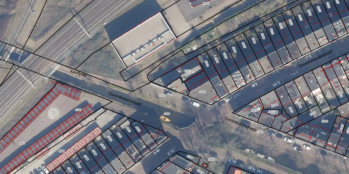 Garenkokerskade 1-A is gelegen op kadastraal perceel HLM01A5328. Deze kadastrale aanduiding is uniek en wordt gebruikt door het Kadaster om eigendomsrechten en andere zakelijke rechten vast te leggen. Het perceel maakt onderdeel uit van de kadastrale gemeente Haarlem.
