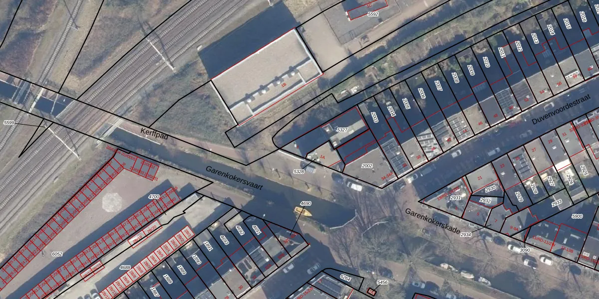 Garenkokerskade 1 is gelegen op kadastraal perceel HLM01A5327. Deze kadastrale aanduiding is uniek en wordt gebruikt door het Kadaster om eigendomsrechten en andere zakelijke rechten vast te leggen. Het perceel maakt onderdeel uit van de kadastrale gemeente Haarlem.