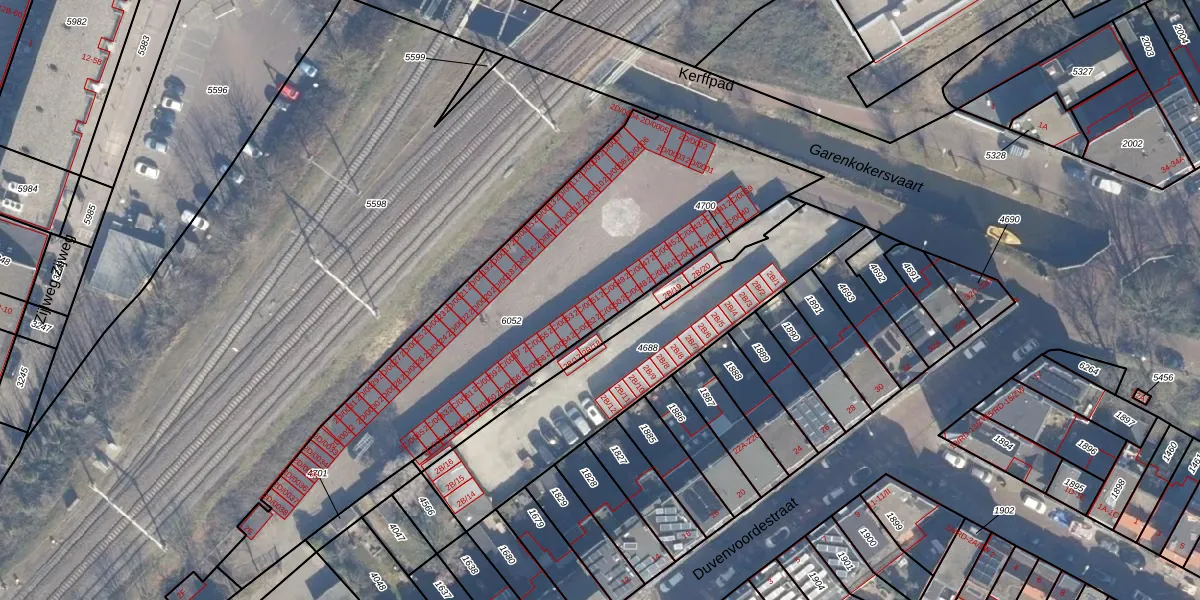 Garenkokerskade 2-C-0050 is gelegen op kadastraal perceel HLM01A6052. Deze kadastrale aanduiding is uniek en wordt gebruikt door het Kadaster om eigendomsrechten en andere zakelijke rechten vast te leggen. Het perceel maakt onderdeel uit van de kadastrale gemeente Haarlem.