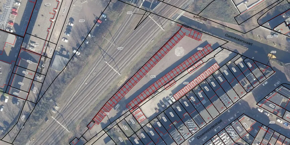 Garenkokerskade 2-D-0020 is gelegen op kadastraal perceel HLM01A6052. Deze kadastrale aanduiding is uniek en wordt gebruikt door het Kadaster om eigendomsrechten en andere zakelijke rechten vast te leggen. Het perceel maakt onderdeel uit van de kadastrale gemeente Haarlem.