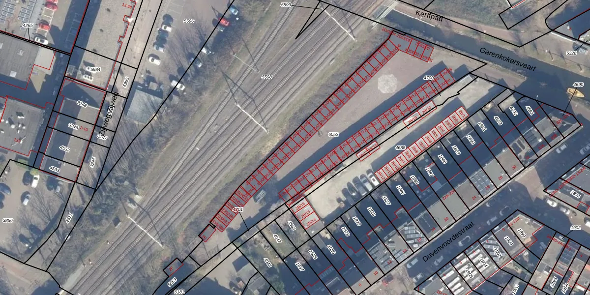 Garenkokerskade 2-D-0024 is gelegen op kadastraal perceel HLM01A6052. Deze kadastrale aanduiding is uniek en wordt gebruikt door het Kadaster om eigendomsrechten en andere zakelijke rechten vast te leggen. Het perceel maakt onderdeel uit van de kadastrale gemeente Haarlem.
