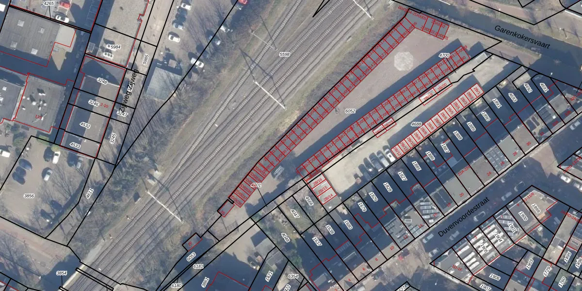 Het perceel waarop Garenkokerskade 2-D-0028 staat heeft een oppervlakte van 1970 m². Dit is een zeer groot perceel. De perceeloppervlakte wordt geregistreerd door het Kadaster. Gedetailleerde informatie over de maten van dit perceel kunt u vinden in het rapport Kadastrale kaart met maatvoering van Garenkokerskade 2-D-0028.