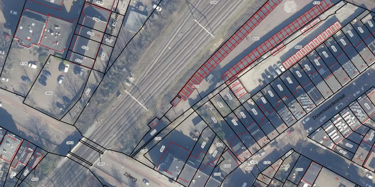 Het adres is gelegen op perceel 6052 in de sectie A en de kadastrale gemeente Haarlem. De kadastrale aanduiding is aldus HLM01-A-6052. De oppervlakte van het perceel is 1970 m². Dat is groter dan gemiddeld in Haarlem, waar de gemiddelde perceeloppervlakte op 328,17 m² ligt. Het grootste perceel in de kadastrale gemeente is 13,9 ha. Het kleinste perceel heeft een oppervlakte van 0 m². Op het perceel zijn 66 adressen aanwezig. De huidige grenzen van het perceel zijn digitaal in de Basisregistratie Kadaster (BRK) geregistreerd op 21-10-2014.