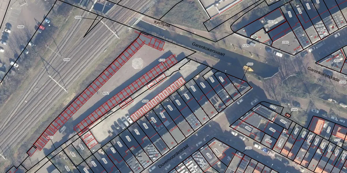 Het perceel waarop Garenkokerskade 2-B-3 staat heeft een oppervlakte van 876 m². Dit is een groot perceel. De perceeloppervlakte wordt geregistreerd door het Kadaster. Gedetailleerde informatie over de maten van dit perceel kunt u vinden in het rapport Kadastrale kaart met maatvoering van Garenkokerskade 2-B-3.