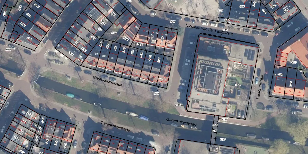 Het perceel waarop Garenkokerskade 65 staat heeft een oppervlakte van 121 m². Dit is een middelgroot perceel. De perceeloppervlakte wordt geregistreerd door het Kadaster. Gedetailleerde informatie over de maten van dit perceel kunt u vinden in het rapport Kadastrale kaart met maatvoering van Garenkokerskade 65.