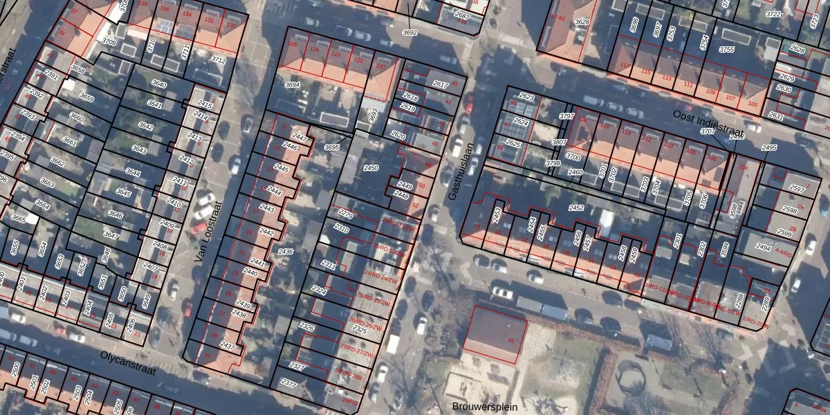 Gebruik de zoekbalk of klik op een perceel voor informatie over de adressen binnen dit perceel.