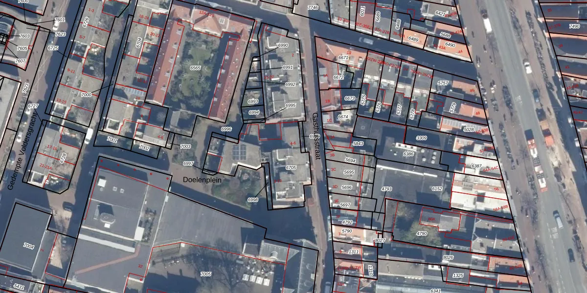 Het perceel waarop Gasthuisstraat 6 staat heeft een oppervlakte van 1055 m². Dit is een zeer groot perceel. De perceeloppervlakte wordt geregistreerd door het Kadaster. Gedetailleerde informatie over de maten van dit perceel kunt u vinden in het rapport Kadastrale kaart met maatvoering van Gasthuisstraat 6.