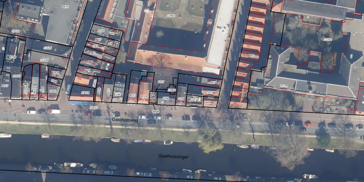 Het perceel waarop Gasthuisvest 39-RD staat heeft een oppervlakte van 69 m². Dit is een klein perceel. De perceeloppervlakte wordt geregistreerd door het Kadaster. Gedetailleerde informatie over de maten van dit perceel kunt u vinden in het rapport Kadastrale kaart met maatvoering van Gasthuisvest 39-RD.