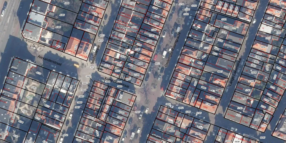 Het perceel waarop Gedempte Raamgracht 44 staat heeft een oppervlakte van 66 m². Dit is een klein perceel. De perceeloppervlakte wordt geregistreerd door het Kadaster. Gedetailleerde informatie over de maten van dit perceel kunt u vinden in het rapport Kadastrale kaart met maatvoering van Gedempte Raamgracht 44.