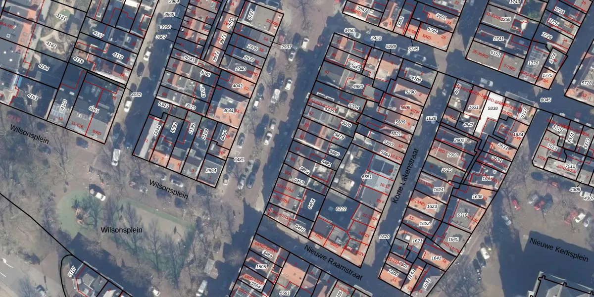 Gebruik de zoekbalk of klik op een perceel voor informatie over de adressen binnen dit perceel.