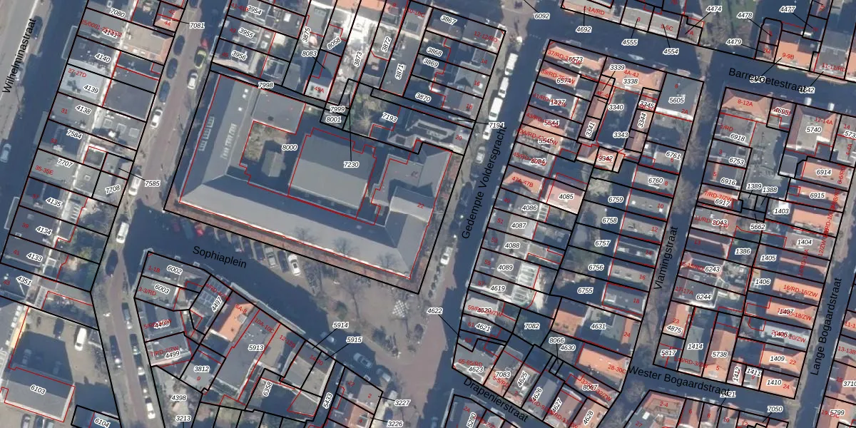 Het perceel waarop Gedempte Voldersgracht 22 staat heeft een oppervlakte van 2060 m². Dit is een zeer groot perceel. De perceeloppervlakte wordt geregistreerd door het Kadaster. Gedetailleerde informatie over de maten van dit perceel kunt u vinden in het rapport Kadastrale kaart met maatvoering van Gedempte Voldersgracht 22.