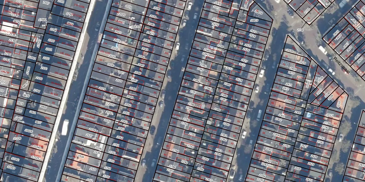 Het perceel waarop Generaal Bothastraat 100 staat heeft een oppervlakte van 85 m². Dit is een klein perceel. De perceeloppervlakte wordt geregistreerd door het Kadaster. Gedetailleerde informatie over de maten van dit perceel kunt u vinden in het rapport Kadastrale kaart met maatvoering van Generaal Bothastraat 100.