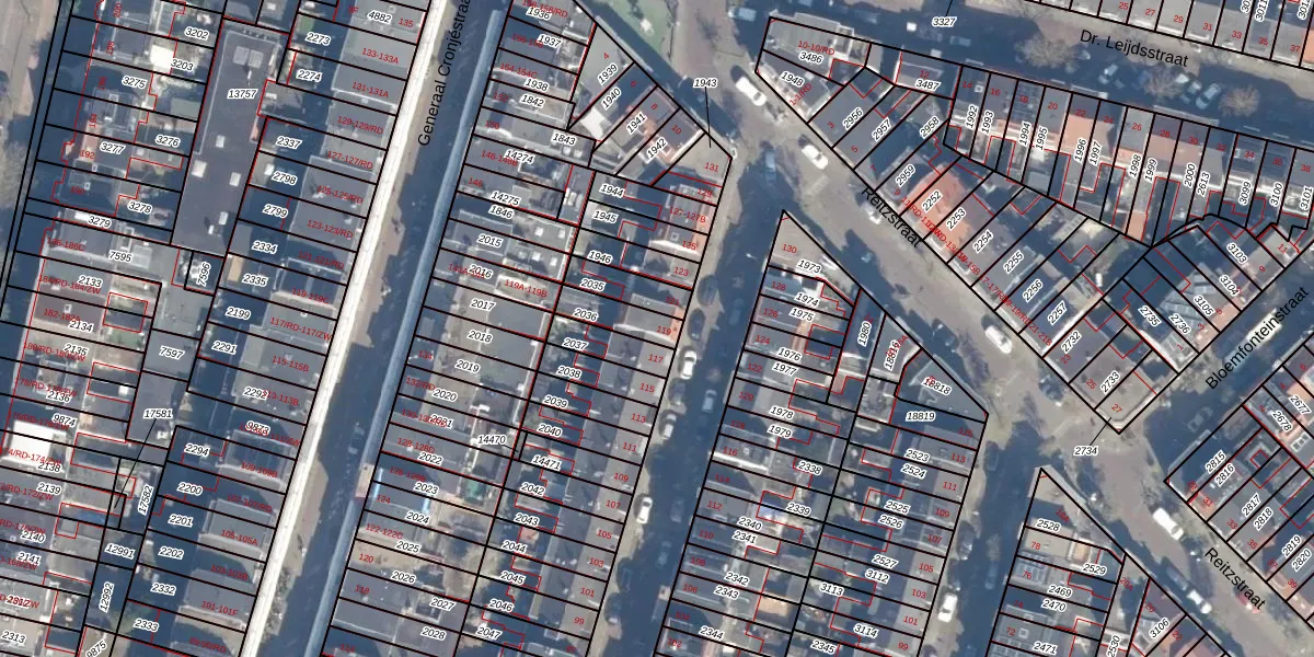 Gebruik de zoekbalk of klik op een perceel voor informatie over de adressen binnen dit perceel.