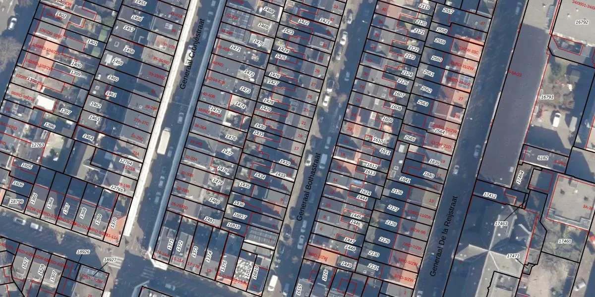 Gebruik de zoekbalk of klik op een perceel voor informatie over de adressen binnen dit perceel.