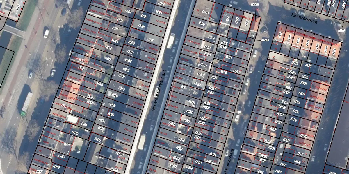 Het perceel waarop Generaal Cronjéstraat 46 staat heeft een oppervlakte van 104 m². Dit is een middelgroot perceel. De perceeloppervlakte wordt geregistreerd door het Kadaster. Gedetailleerde informatie over de maten van dit perceel kunt u vinden in het rapport Kadastrale kaart met maatvoering van Generaal Cronjéstraat 46.