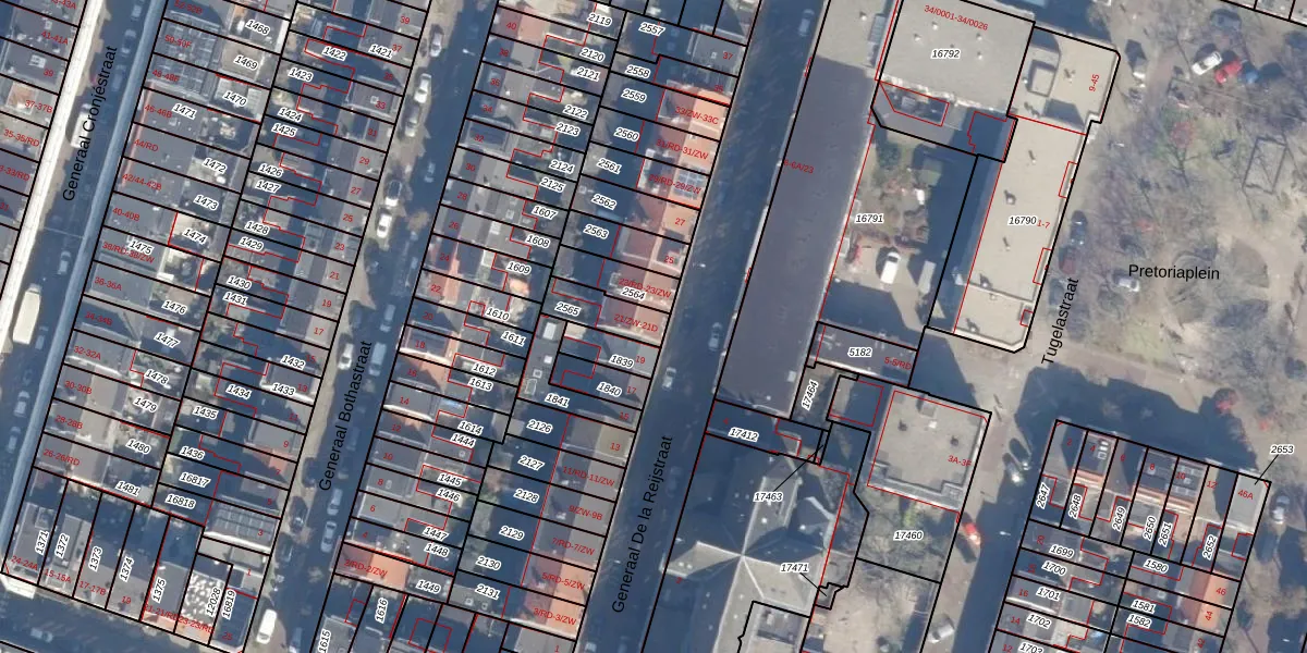 Generaal De la Reijstraat 21-ZW is gelegen op kadastraal perceel STN01B2565. Deze kadastrale aanduiding is uniek en wordt gebruikt door het Kadaster om eigendomsrechten en andere zakelijke rechten vast te leggen. Het perceel maakt onderdeel uit van de kadastrale gemeente Schoten.
