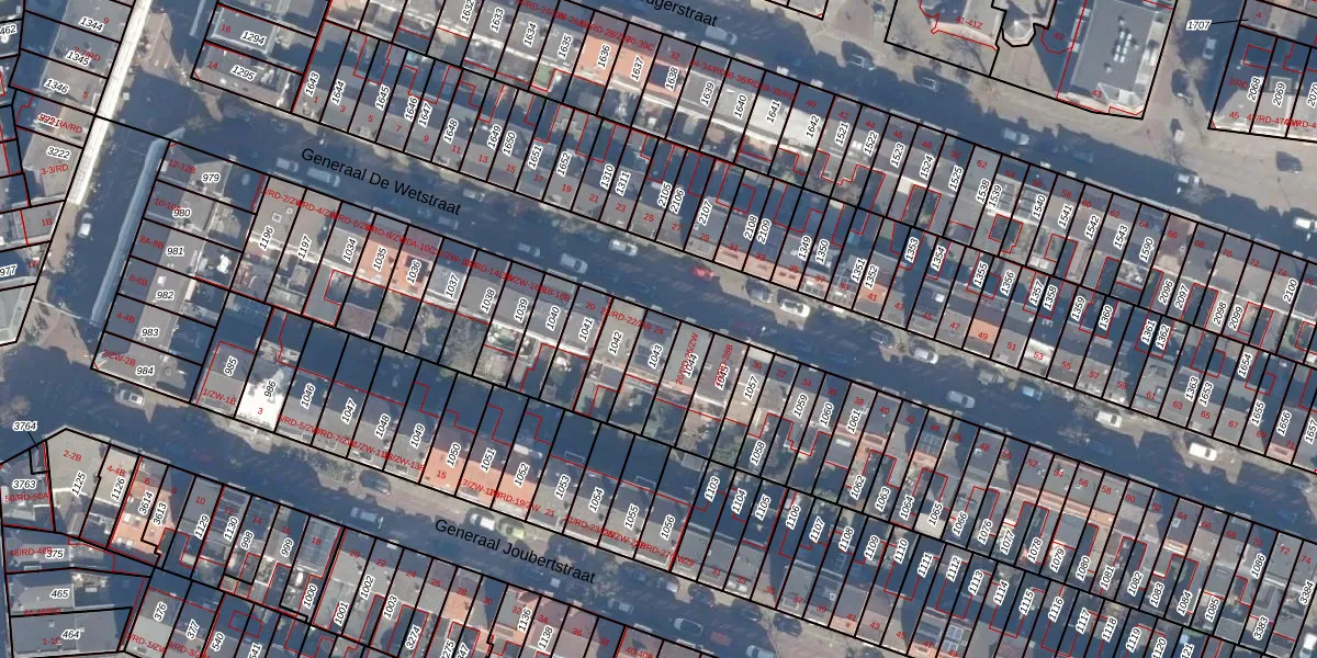 Het perceel waarop Generaal De Wetstraat 24 staat heeft een oppervlakte van 100 m². Dit is een middelgroot perceel. De perceeloppervlakte wordt geregistreerd door het Kadaster. Gedetailleerde informatie over de maten van dit perceel kunt u vinden in het rapport Kadastrale kaart met maatvoering van Generaal De Wetstraat 24.