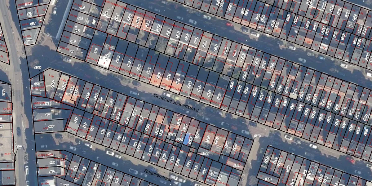 Het perceel waarop Generaal Joubertstraat 21 staat heeft een oppervlakte van 105 m². Dit is een middelgroot perceel. De perceeloppervlakte wordt geregistreerd door het Kadaster. Gedetailleerde informatie over de maten van dit perceel kunt u vinden in het rapport Kadastrale kaart met maatvoering van Generaal Joubertstraat 21.