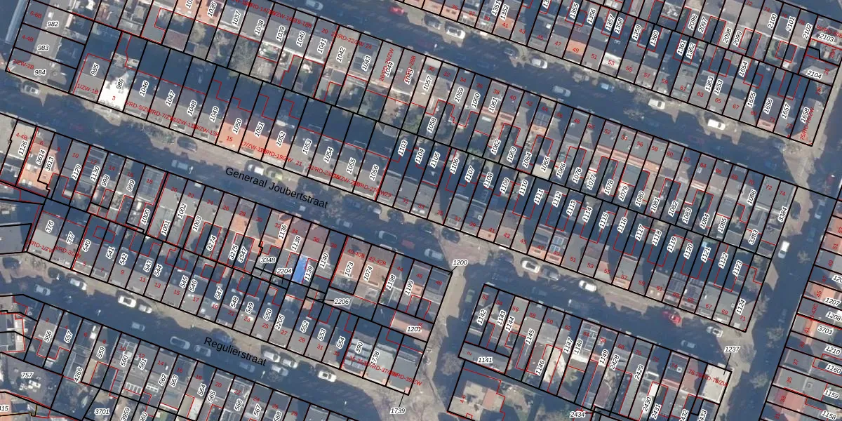 Het perceel waarop Generaal Joubertstraat 33 staat heeft een oppervlakte van 78 m². Dit is een klein perceel. De perceeloppervlakte wordt geregistreerd door het Kadaster. Gedetailleerde informatie over de maten van dit perceel kunt u vinden in het rapport Kadastrale kaart met maatvoering van Generaal Joubertstraat 33.