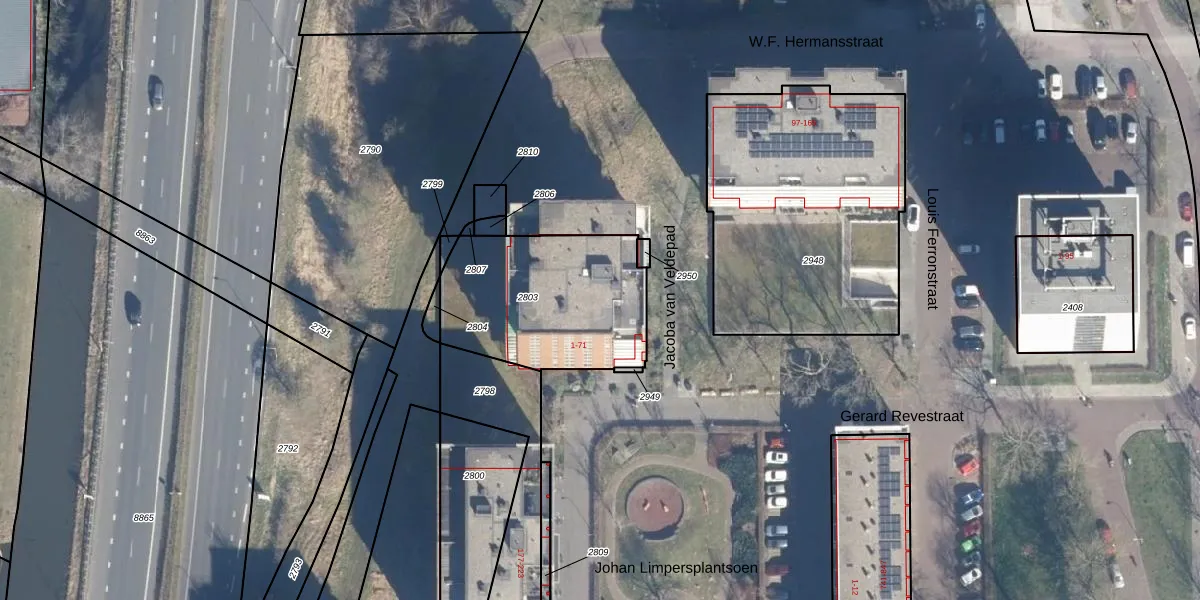 Het perceel waarop Gerard Revestraat 29 staat heeft een oppervlakte van 710 m². Dit is een groot perceel. De perceeloppervlakte wordt geregistreerd door het Kadaster. Gedetailleerde informatie over de maten van dit perceel kunt u vinden in het rapport Kadastrale kaart met maatvoering van Gerard Revestraat 29.