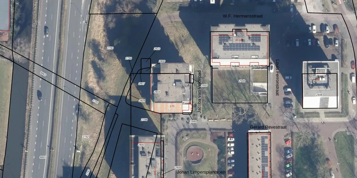 Het perceel waarop Gerard Revestraat 41 staat heeft een oppervlakte van 710 m². Dit is een groot perceel. De perceeloppervlakte wordt geregistreerd door het Kadaster. Gedetailleerde informatie over de maten van dit perceel kunt u vinden in het rapport Kadastrale kaart met maatvoering van Gerard Revestraat 41.