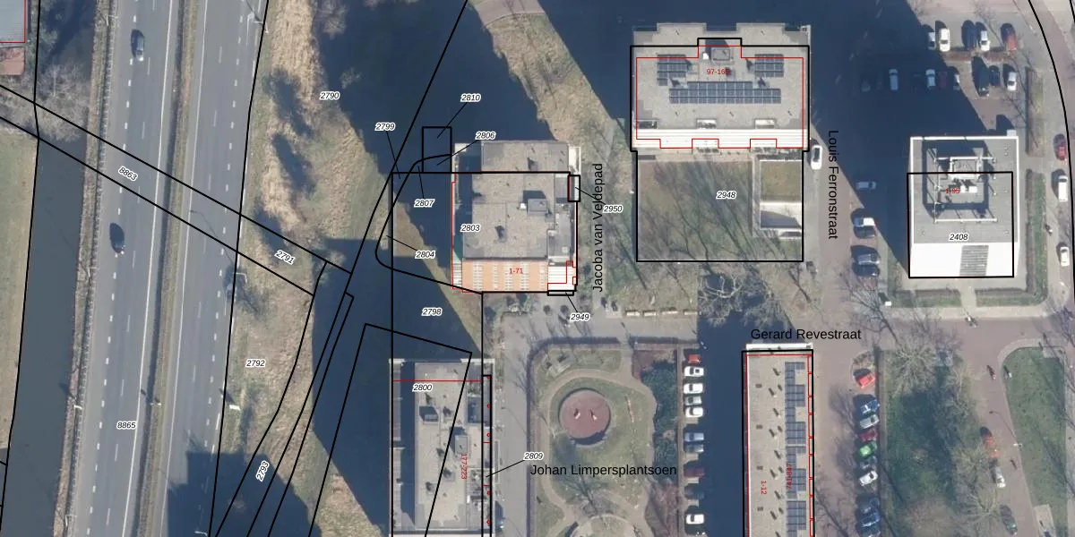 Het perceel waarop Gerard Revestraat 5 staat heeft een oppervlakte van 710 m². Dit is een groot perceel. De perceeloppervlakte wordt geregistreerd door het Kadaster. Gedetailleerde informatie over de maten van dit perceel kunt u vinden in het rapport Kadastrale kaart met maatvoering van Gerard Revestraat 5.