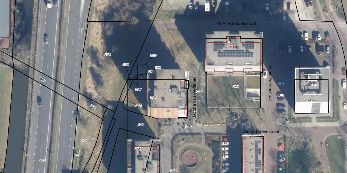 Het perceel waarop Gerard Revestraat 57 staat heeft een oppervlakte van 710 m². Dit is een groot perceel. De perceeloppervlakte wordt geregistreerd door het Kadaster. Gedetailleerde informatie over de maten van dit perceel kunt u vinden in het rapport Kadastrale kaart met maatvoering van Gerard Revestraat 57.