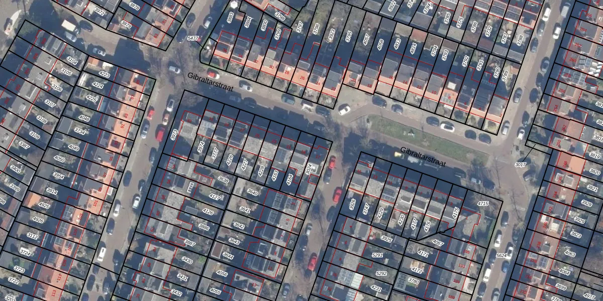 Het perceel waarop Gibraltarstraat 19 staat heeft een oppervlakte van 115 m². Dit is een middelgroot perceel. De perceeloppervlakte wordt geregistreerd door het Kadaster. Gedetailleerde informatie over de maten van dit perceel kunt u vinden in het rapport Kadastrale kaart met maatvoering van Gibraltarstraat 19.