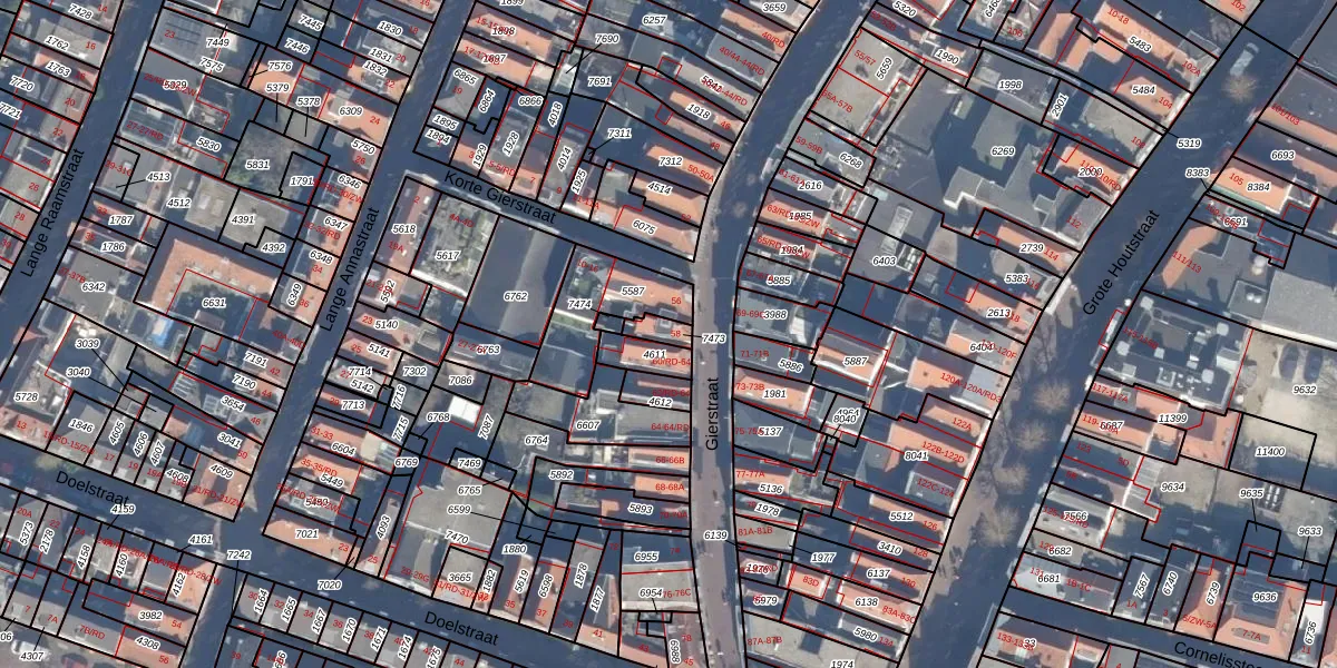 Gebruik de zoekbalk of klik op een perceel voor informatie over de adressen binnen dit perceel.