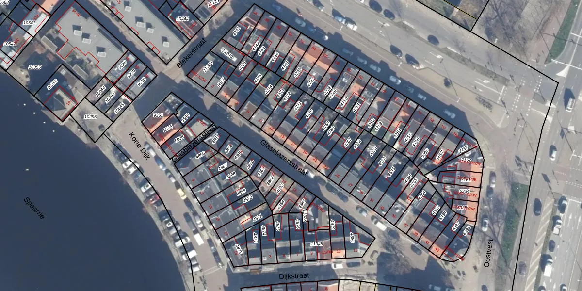 Gebruik de zoekbalk of klik op een perceel voor informatie over de adressen binnen dit perceel.