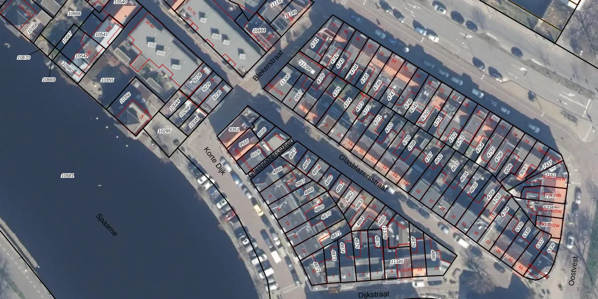 Gebruik de zoekbalk of klik op een perceel voor informatie over de adressen binnen dit perceel.