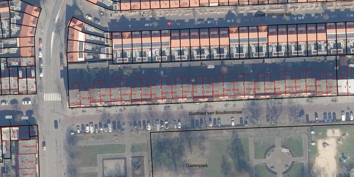 Godfried van Bouillonstraat 21-RD is gelegen op kadastraal perceel HLM01E4980. Deze kadastrale aanduiding is uniek en wordt gebruikt door het Kadaster om eigendomsrechten en andere zakelijke rechten vast te leggen. Het perceel maakt onderdeel uit van de kadastrale gemeente Haarlem.