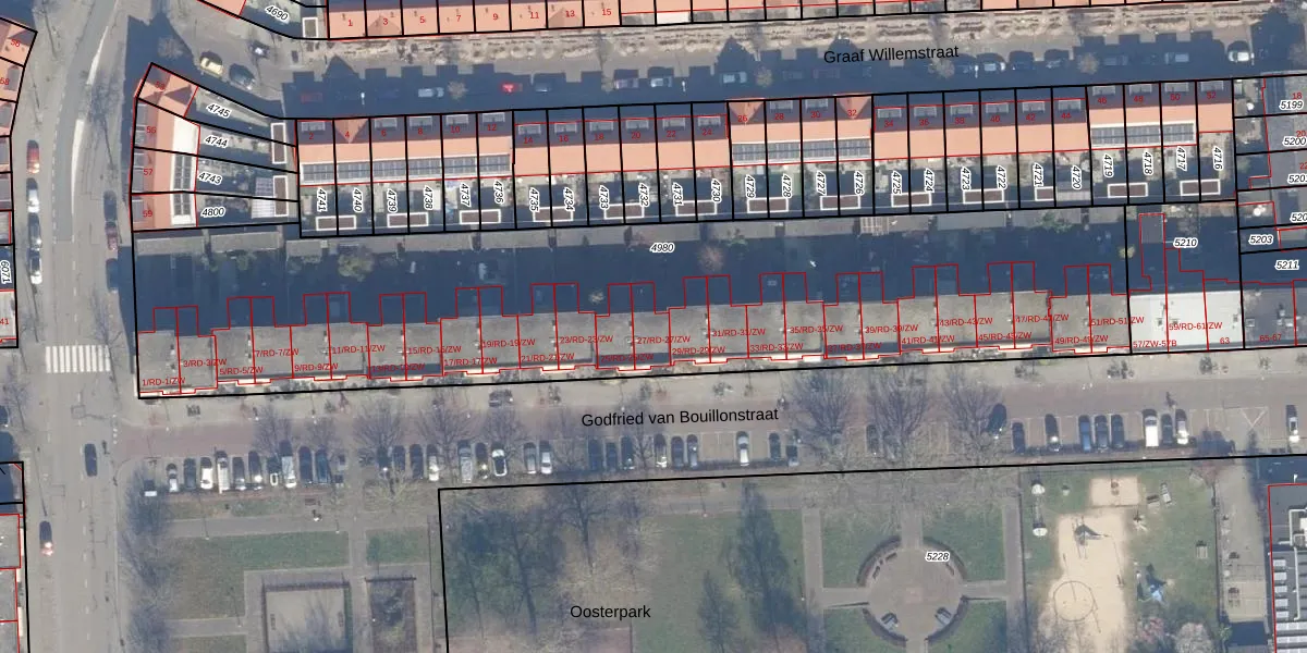 Godfried van Bouillonstraat 27-RD is gelegen op kadastraal perceel HLM01E4980. Deze kadastrale aanduiding is uniek en wordt gebruikt door het Kadaster om eigendomsrechten en andere zakelijke rechten vast te leggen. Het perceel maakt onderdeel uit van de kadastrale gemeente Haarlem.