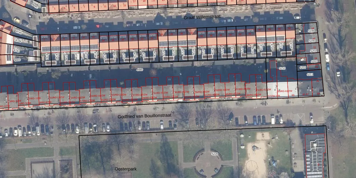 Het perceel waarop Godfried van Bouillonstraat 35-RD staat heeft een oppervlakte van 3590 m². Dit is een zeer groot perceel. De perceeloppervlakte wordt geregistreerd door het Kadaster. Gedetailleerde informatie over de maten van dit perceel kunt u vinden in het rapport Kadastrale kaart met maatvoering van Godfried van Bouillonstraat 35-RD.