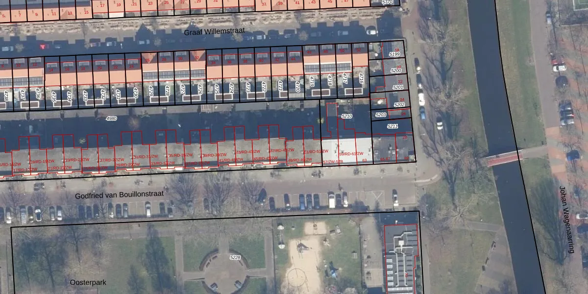 Godfried van Bouillonstraat 49-RD is gelegen op kadastraal perceel HLM01E4980. Deze kadastrale aanduiding is uniek en wordt gebruikt door het Kadaster om eigendomsrechten en andere zakelijke rechten vast te leggen. Het perceel maakt onderdeel uit van de kadastrale gemeente Haarlem.