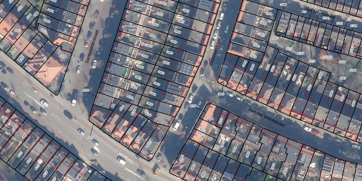 Het perceel waarop Goltziusstraat 20 staat heeft een oppervlakte van 138 m². Dit is een middelgroot perceel. De perceeloppervlakte wordt geregistreerd door het Kadaster. Gedetailleerde informatie over de maten van dit perceel kunt u vinden in het rapport Kadastrale kaart met maatvoering van Goltziusstraat 20.