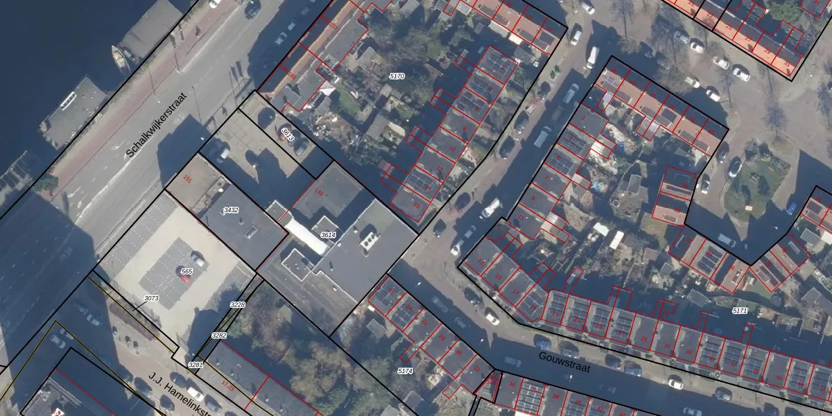 Het perceel waarop Gouwstraat 16 staat heeft een oppervlakte van 2945 m². Dit is een zeer groot perceel. De perceeloppervlakte wordt geregistreerd door het Kadaster. Gedetailleerde informatie over de maten van dit perceel kunt u vinden in het rapport Kadastrale kaart met maatvoering van Gouwstraat 16.