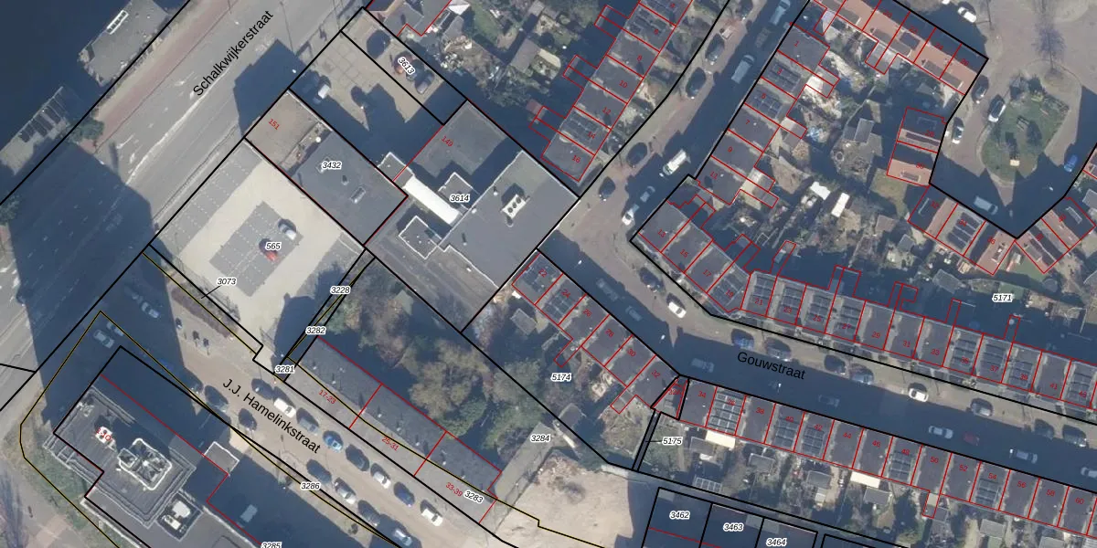 Het perceel waarop Gouwstraat 22 staat heeft een oppervlakte van 757 m². Dit is een groot perceel. De perceeloppervlakte wordt geregistreerd door het Kadaster. Gedetailleerde informatie over de maten van dit perceel kunt u vinden in het rapport Kadastrale kaart met maatvoering van Gouwstraat 22.